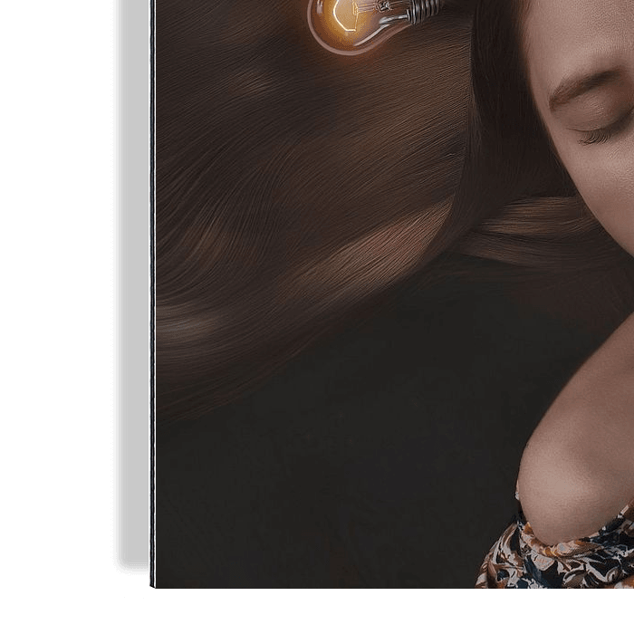 Koop de foto Unieke Ideeën van Neurodiverse Mensen - Vrouw met Gloeilampen in Haar | Inspirerende Kunst van Elianne van Turennout op canvas, aluminium dibond, (ingelijste) fotoprint, behang en ArtFrame, op maat geprint in Fine-Art kwaliteit.