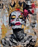 Over ‘Urban Queen een krachtige vrouw met kroon in mixed media collage’ van Dutch Art Works