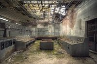 Controle panelen in een verlaten en vervallen industrie gebouw.
