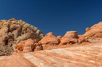 Stap in een wereld waar de verzengende hitte van de woestijn het landschap heeft vormgegeven tot een levend kunstwerk. De Valley of Fire in Nevada is een spektakel van zandsteenformaties die in tinten variëren van diep rood tot oranje en zachtgeel. Deze rotsen, gevormd door miljoenen jaren wind en watererosie, lijken in de brandende zon…