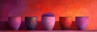 Details: stilleven, abstract, modern, potten, levendig, textuur, minimalistisch, paars, rood, oranje