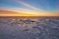 Ijzige pool landschappen bij het Vlietermonument op de Afsluitdijk. Het Vlietermonument bevindt zich bij de Vlieter, de plaats waar in 1932 de Afsluitdijk werd gesloten. Het is een monument in de vorm van een uitkijktoren, ontworpen door architect Willem Dudok. De toren is in 1933 gebouwd.