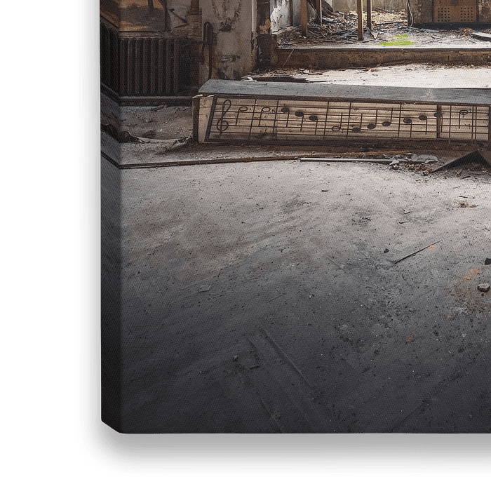 Ik fotografeerde deze prachtige balzaal in zwaar verval op een regenachtige en koude dag in Oost-Duitsland. De zaal en het podium waren vrij klein. Een groot deel van het gebouw is al ingestort en het ziet ernaar uit dat het ook niet lang meer zal duren voordat dit deel instort,