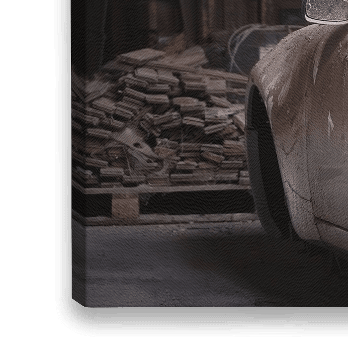 Porsche in een verlaten garage. Anders dan deze auto stonden er in de garage geen auto's. Dit pronkstuk zit helemaal onder het stof en mist hier en daar al wat onderdelen.