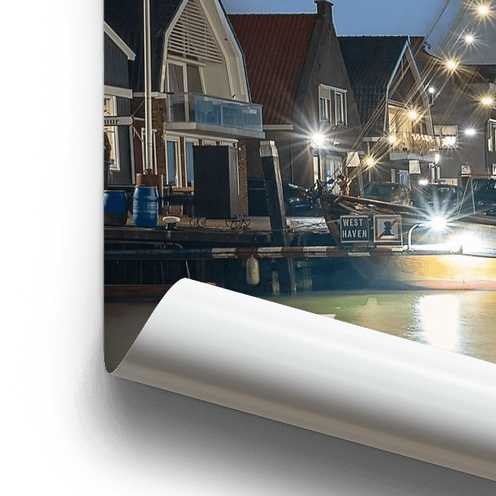 In het najaar zijn de schepen in de Westerhaven van Urk verlicht. Dat geeft tijdens het blauwe "uur" (de tijd na zonsondergang) een sfeervol beeld.