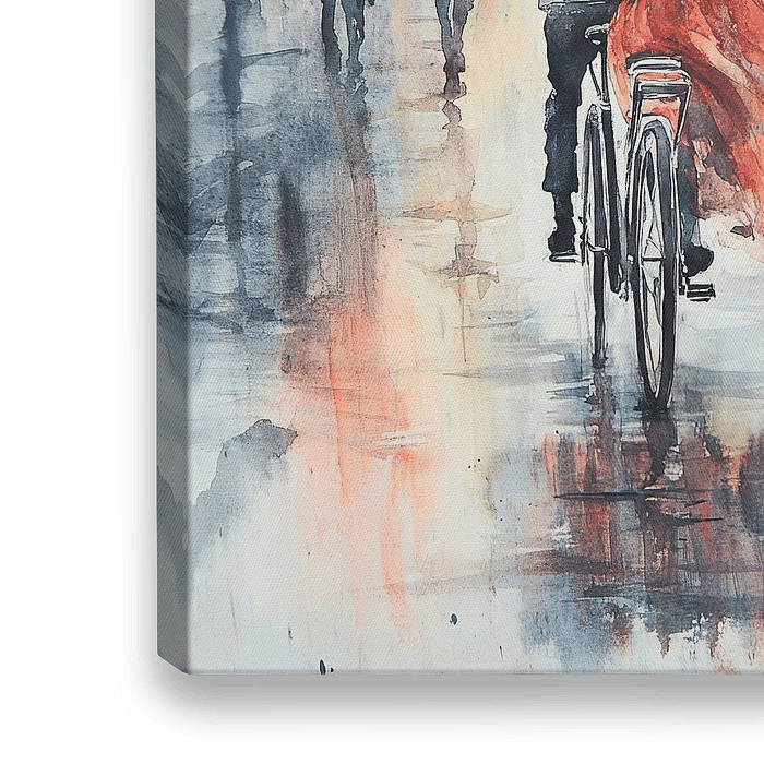 Koop dit abstracte kunstwerk Verliefd fietsen in de regen van Poster Art Shop op canvas, aluminium dibond, (ingelijste) fotoprint, behang en ArtFrame, op maat geprint in Fine-Art kwaliteit.