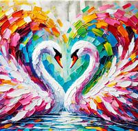 Verliefde zwanen - Kleurrijke elegantie in perfecte harmonie