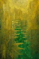 Koop dit abstracte kunstwerk Verloren Stad in Groen en Goud van Whale & Sons op canvas, aluminium dibond, (ingelijste) fotoprint, behang en ArtFrame, op maat geprint in Fine-Art kwaliteit.