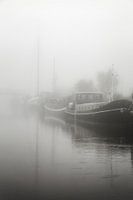 Een woonboot in de Purmerendse mist. Ik vond dit beeld op de Ringvaart, ter hoogte van het Leeghwaterpark en de rivier de Where. De mist was heel dik; linksachter is nog net een bruggetje te zien, dat toch best dichtbij is.