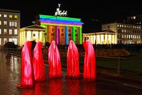 Vijf rode beelden voor de verlichte Brandenburger Tor