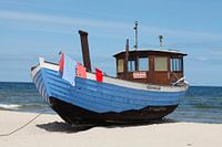 Over ‘Vissersboot op het strand in Bansin, Bansin, eiland Usedom, Mecklenburg-Vorpommern, Duitsland, Europ’ van Torsten Krüger