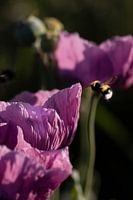 Vliegende hommel bij lilla papaver - Close-up van Marianne van der Zee