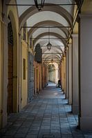 Erg mooie arcade gang in Modena in Italie. Mooie kleuren geven dit voetpad onder de bogen door, een erg romantisch gevoel