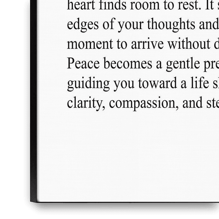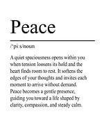 Deze minimalistische typografieposter legt de nadruk op het begrip 'vrede' en staat voor innerlijke rust, ruimte en zachte helderheid. Het minimalistische ontwerp past harmonieus in moderne woon- en ontspanningsruimtes. Vrede beschrijft een staat van ontspannen aanwezigheid, waarin gedachten tot rust komen en sereniteit ontstaat. Ideaal…