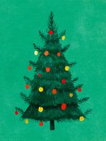 Koop dit schilderij Vriendelijke kerstboomillustratie met warme lichtjes op groene achtergrond van But First Framing als reproductie op canvas, aluminium dibond, (ingelijste) fotoprint, behang en ArtFrame, op maat geprint in Fine-Art kwaliteit.