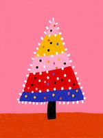 Deze vrolijke kerstboom straalt pure feestvreugde uit. De boom is opgebouwd uit speelse kleurvlakken in roze, geel, rood en blauw, versierd met stippen en omringd door kleine witte lichtjes. De achtergrond is felroze, wat het geheel een moderne en eigentijdse uitstraling geeft. Ondanks de eenvoud van de vormen is de energie voelbaar –…