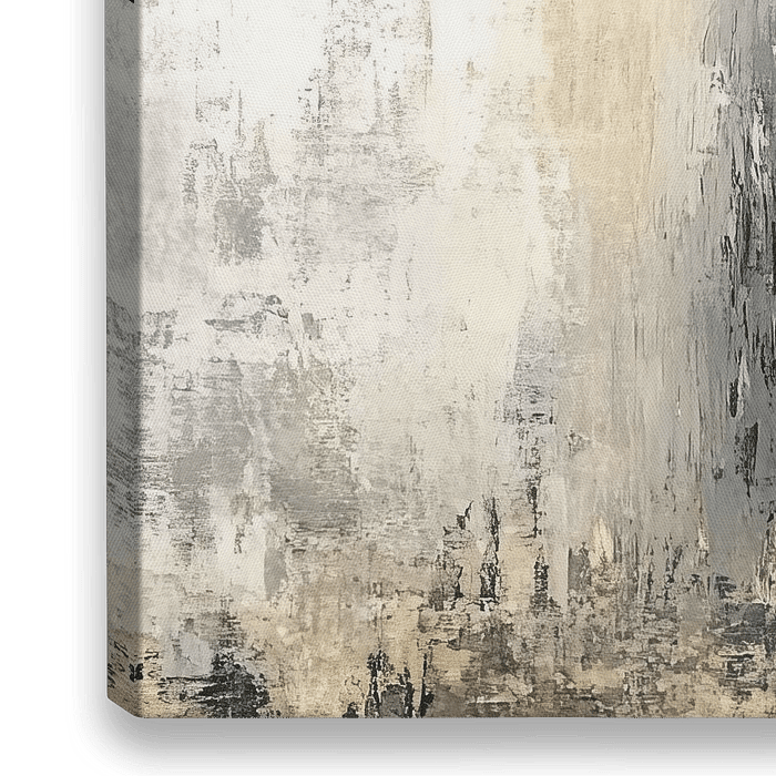 Vrouw Goud - Dit is een vrouwen schilderij en tegelijk een schilderij vrouw, een modern abstract werk met een vage silhouet van een vrouw in profiel, geschilderd met ruwe penseelstreken in een ingetogen palet van beige, goud en aardetinten, waardoor het schilderij vrouw zacht, mistig en rustig overkomt.