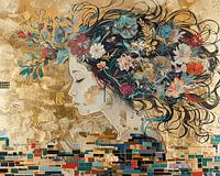 Vrouw Gouden Bloemen | Mystic Chroma Flow van Kunst Kriebels