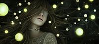 Details: vrouw, sterren, abstract, licht, donker, zilver, groen, portret, mysterieus, dromerig