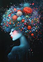 Koop dit bloemen kunstwerk Vrouw en Bloemen van Kunst Kriebels op canvas, aluminium dibond, (ingelijste) fotoprint, behang en ArtFrame, op maat geprint in Fine-Art kwaliteit.