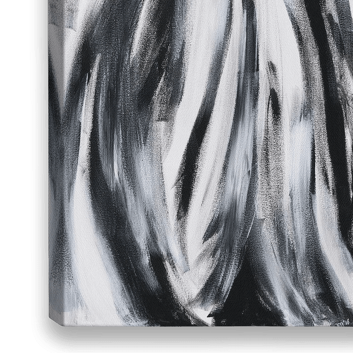 Ik heb het geschilderd met acrylverf in zwart-wit. Het is een kruising tussen abstract en realisme.