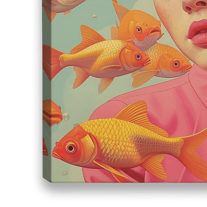 Koop dit Popart kunstwerk Vrouw met goudvis van ARTemberaubend op canvas, aluminium dibond, (ingelijste) fotoprint, behang en ArtFrame, op maat geprint in Fine-Art kwaliteit.
