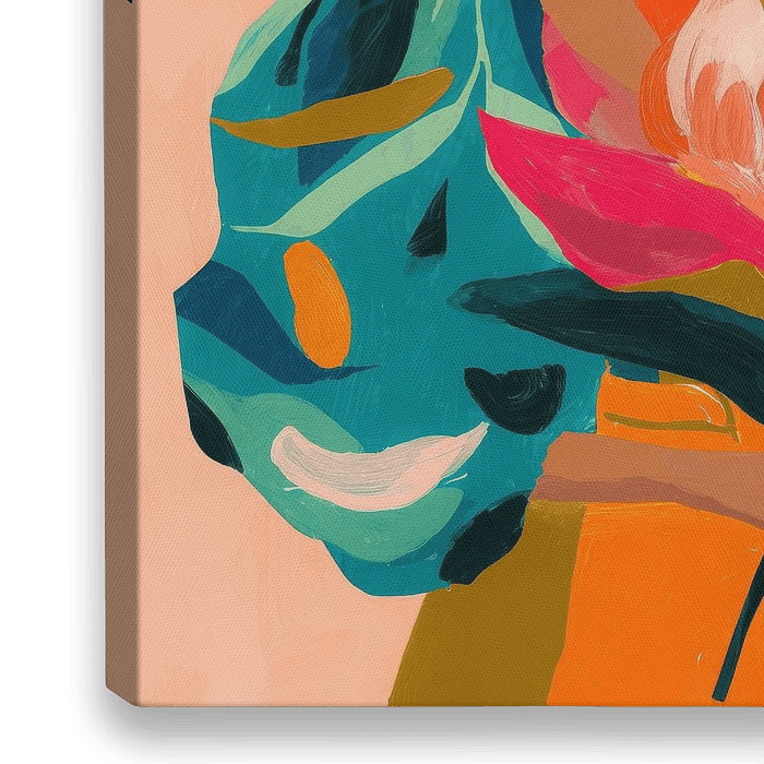 Over ‘Vrouw met kleurrijke bloem in tropische tinten’ van But First Framing