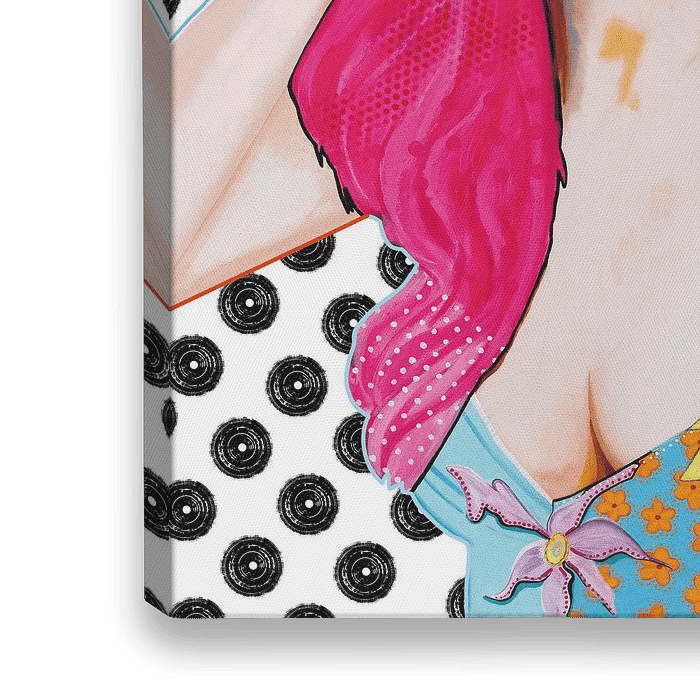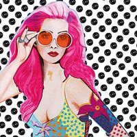 Vrouw met zonnebril en knal roze haar. Een van mijn favoriete schilderijen. Een beetje jaren 80 stijl.