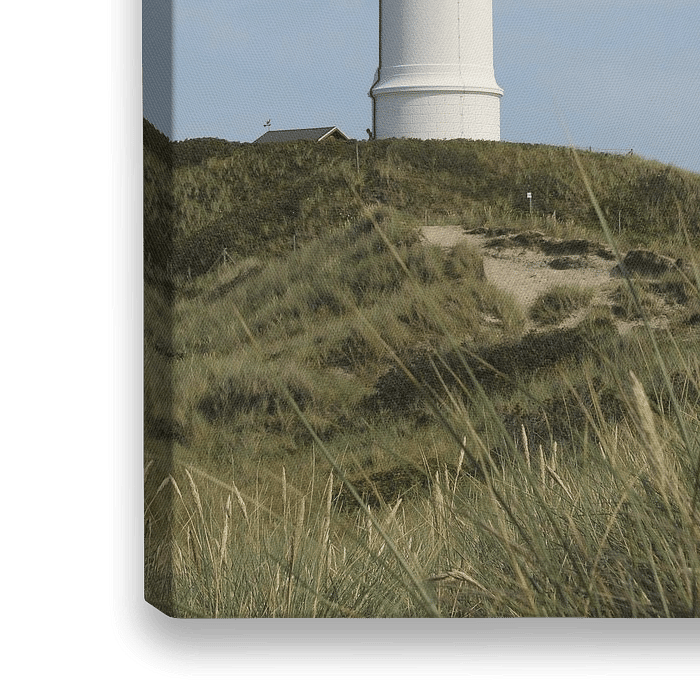 Witte vuurtoren, Lyngvig Fyr bij Ringkobing in Denemarken, op een zonnige zomerdag. Dit bekende oriëntatiepunt in Jutland staat hoog tussen de zandduinen aan de Deense westkust.