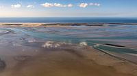 Spiegeling van de lucht en wolken in het drooggevallen wad aan de zuidkant van Vlieland ter hoogte van de Kroon's Polders en Vliehors.
