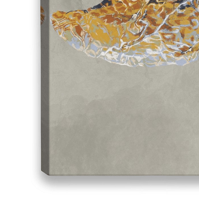 Het werk geeft daardoor een warm en cool maar ook warm gevoel. Er zijn aarde tinten gebruikt om dit gevoel te versterken. Het werk is digitaal gemaakt op een tablet, maar ziet er door de ruwe tekenstrook uit of het geschilderd is. Dit werk is een echte kleurrijke eye catcher in jouw interieur.