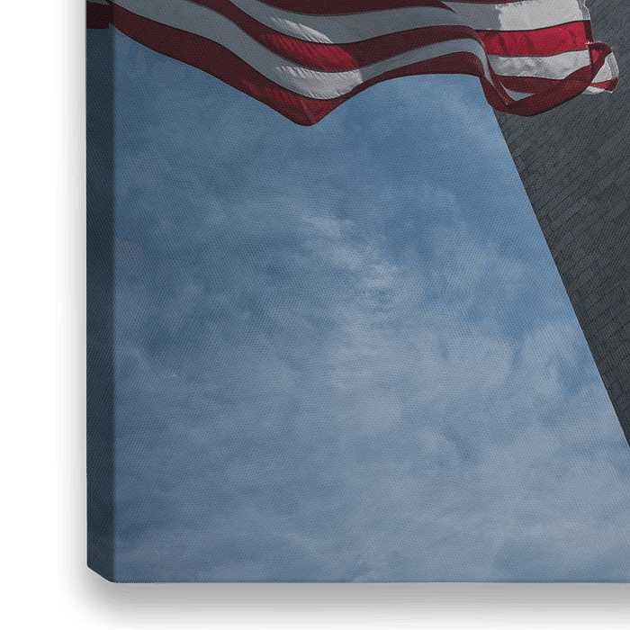 Washington Monument - Close up bij daglicht. In combinatie met de Amerikaanse vlag
