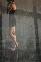 Ze kijkt benauwd met haar hand bij haar gezicht. Het meisje loopt in een kort rokje duidelijk niet gekleed voor dit gure weer en langzaam stapt ze naar voren. Wat is hier aan de hand. Ze is een mooi meisje dat zeker aandacht zal krijgen van veel jongens. Is er iets misgegaan met een vriendje van haar. Dat moet het geval zijn want zo'n meisje loopt niet zomaar door de stromende regen.