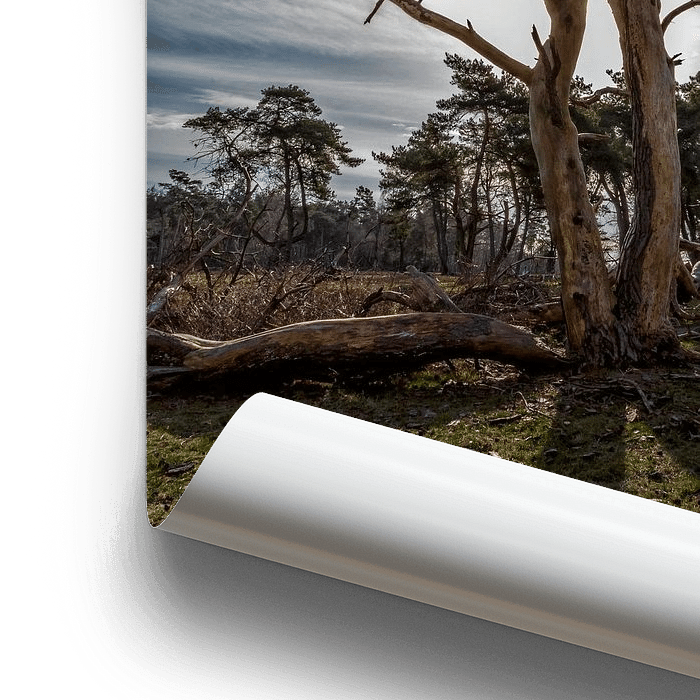 Het voorjaar is echt begonnen op de Utrechtse Heuvelrug. Prachtig om te zien hoe het waterige zonnetje haar weg weet te vinden tussen twee oude dode bomen op de Utrechtse Heuvelrug.