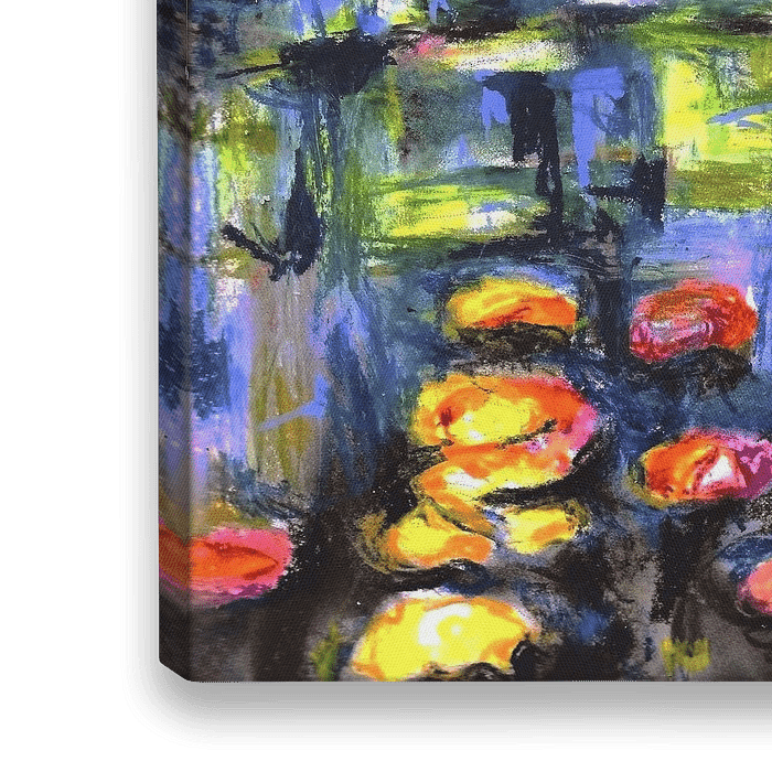 Een schilderij van waterlelies , geïnspireerd door Claude Monet .