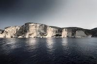 Witte ruige kalksteen rotsen met golvende vormen bij Paxos in Griekenland