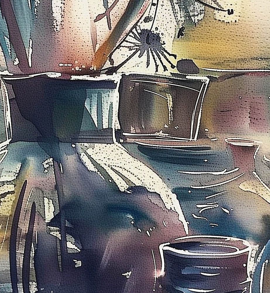 De weergave van licht en textuur in het schilderij kan wijzen op een zekere kwetsbaarheid, alsof de vazen elk moment kunnen bewegen of breken. Dit stuk lijkt de vergankelijkheid van het moment vast te leggen en nodigt de kijker uit om dieper te kijken en te reflecteren op de schoonheid van transparantie en licht.