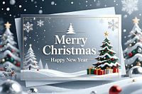 De foto toont een sfeervolle kerstcompositie met een warme achtergrond waarop klassieke feestelijke motieven zachtjes samensmelten: wazige feeënlichtjes vormen een bokeh van gouden en rode stippen, terwijl gestileerde sparrentakken en delicate sneeuwvlokken de rand van de foto omzomen. De kerst- en nieuwjaarswensen zijn centraal…