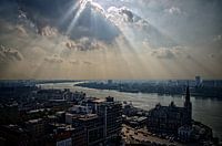 Soms heb je geluk met dit soort opnames. Bovenop het MAS zag ik dat de zon doorbrak en op een bijzondere wijze een deel van Antwerpen in het licht zette.