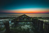 Zonsondergang bij die dijk van Westkapelle in Zeeland.