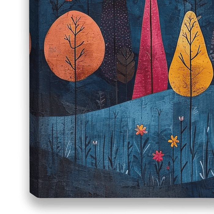 Whimsical Moonlit Peaks - kleurrijk abstract landschap, moderne natuurimpressie