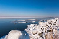 winterlandschap langs de Nederlandse dijken met sneeuw en ijs en in de volle zon.