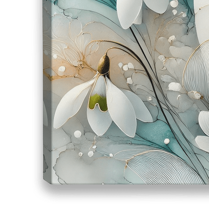 De vloeiende aquarel- en alcoholinkteffecten geven het werk een etherische, dromerige kwaliteit, terwijl de subtiele gouden accenten zorgen voor een verfijnde uitstraling. De combinatie van de ijzige blauwtinten en zachte crèmetinten maakt dit kunstwerk een perfecte toevoeging aan een minimalistisch of natuur geïnspireerd interieur.