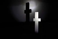 Wit kruis met schaduw in de duisternis van Frank Herrmann