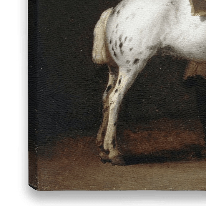 Koop Wit paard in een manege, Abraham van Calraet als reproductie op canvas, aluminium dibond, (ingelijste) fotoprint, behang en ArtFrame, op maat geprint in Fine-Art kwaliteit.