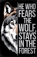 Dit krachtige ontwerp combineert de uitstraling van een wolf met een inspirerende boodschap. De wolf, deels zichtbaar in een gedetailleerde illustratie, staat symbool voor kracht en moed, terwijl de quote He who fears the wolf, stays in the forest de boodschap van doorzettingsvermogen en moed uitdraagt. Met een monochroom kleurenpalet…