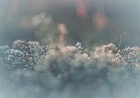 Close up van Galium Saxatile, ofwel liggend walstro, een piepklein bloemetje dat voorkomt op de heide. De foto is gemaakt in het gouden licht van de opkomende zon.