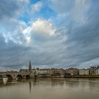 Driegende wolken met een klein beetje blauw lucht boven Wyck, Maastricht