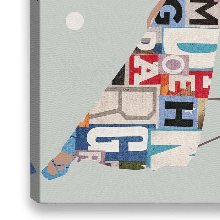 Mixed media in een modern, kleurrijk en ietwat minimalistisch portret van een vrouw.