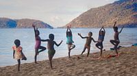 Deze kinderen hebben na het zien van een Aziatische dame die met yoga bezig was de draad snel opgepikt.